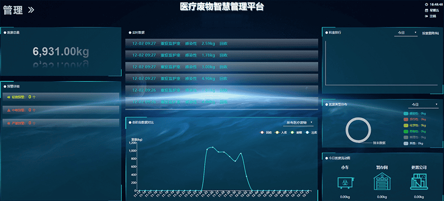 智慧醫(yī)療廢棄物綜合管理系統(tǒng)對醫(yī)院內(nèi)所有醫(yī)療廢棄物進行全領(lǐng)域覆蓋全天候數(shù)據(jù)監(jiān)管,實現(xiàn)全程監(jiān)管,避免遺失,單向流通, 避免人為原因所造成的醫(yī)療廢物的遺失, 真正做到從源頭開始全程監(jiān)管,避免醫(yī)療廢物在科室或投放點垃圾桶上的監(jiān)管缺失。實現(xiàn)精準數(shù)據(jù)分析查詢,通過醫(yī)院醫(yī)療廢棄物信息化監(jiān)管平臺, 促進對醫(yī)療廢物的規(guī)范管理, 提高監(jiān)管效率, 對醫(yī)療廢棄物清運管理中存在的問題可以實時查詢,信息溯源, 責任明確, 做到精細化的信息化閉環(huán)式監(jiān)管。實時將醫(yī)廢采集、運輸和存儲設(shè)備的運行參數(shù)發(fā)送到控制中心,使監(jiān)管人員全面掌握各個醫(yī)衛(wèi)機構(gòu)的醫(yī)療廢物產(chǎn)生、回收、處置情況,利用“物聯(lián)網(wǎng)+”的模式,在醫(yī)療廢物收集、清運、存儲的全過程跟蹤管理和實時監(jiān)控。