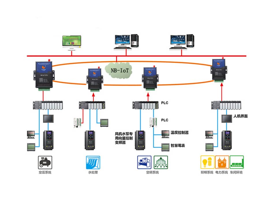 數(shù)控機床遠程監(jiān)測利用傳感器技術(shù)在數(shù)控機床上安裝傳感器——溫度傳感器、電壓傳感器、壓力傳感器、速度傳感器、位移傳感器及激光傳感器用來檢測數(shù)控機床的運動軸、刀具以及其它床身內(nèi)機械或電氣部件的運行狀態(tài),及時地采集數(shù)控機床各設(shè)備的溫度、振動、聲音等信息,把檢測到的各種狀態(tài)數(shù)據(jù)轉(zhuǎn)換成數(shù)字信號,傳感器數(shù)據(jù)以RS485/RS232/IO口給數(shù)據(jù)傳輸終端LoRa/NB-IoT/DTU進行傳輸,服務(wù)器根據(jù)不同的狀態(tài)信息實時記錄和監(jiān)視機床的運行狀態(tài)。