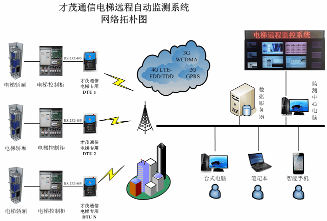 圖3:才茂通信電梯遠(yuǎn)程自動(dòng)監(jiān)測(cè)系統(tǒng)網(wǎng)絡(luò)拓樸圖
