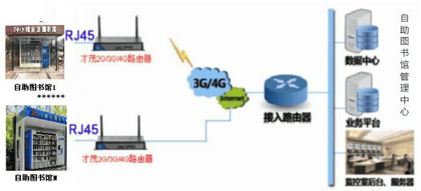 自助圖書館無線數(shù)據(jù)應(yīng)用拓?fù)鋱D(才茂2G/3G/4G路由器)