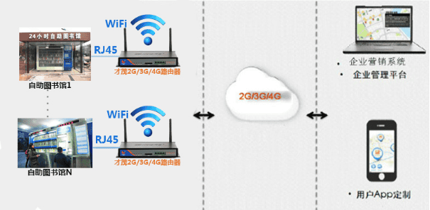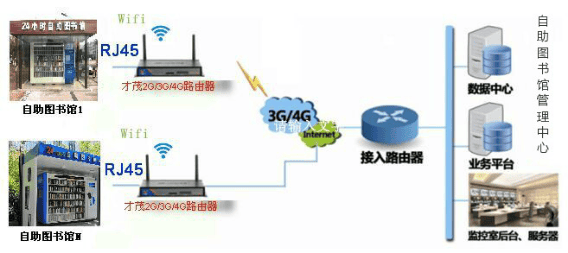 自助圖書館無線數(shù)據(jù)應(yīng)用拓?fù)鋱D(才茂2G/3G/4G路由器+wifi)