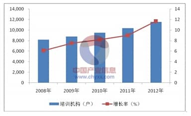 以下是近幾年統(tǒng)計(jì)的有資質(zhì)的培訓(xùn)機(jī)構(gòu)數(shù)量及增長(zhǎng)率