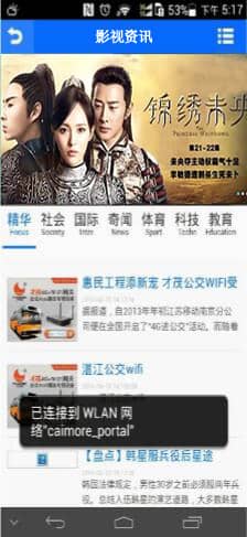 移動終端設備接入CaiMore Wi-Fi終端享受設備存儲的視頻、音樂、資訊、游戲等資訊服務。