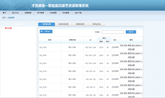 用戶/用戶組相應的控制操作權限設置界面 提供多級區(qū)域、機構的設置界面