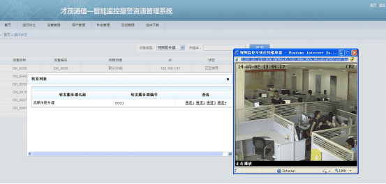 中心平臺采用B/S、C/S架構,該平臺的服務程序包括中心管理服務、注冊服務、轉發(fā)服務,三種服務打包為綜合平臺授權。 客戶端瀏覽功能