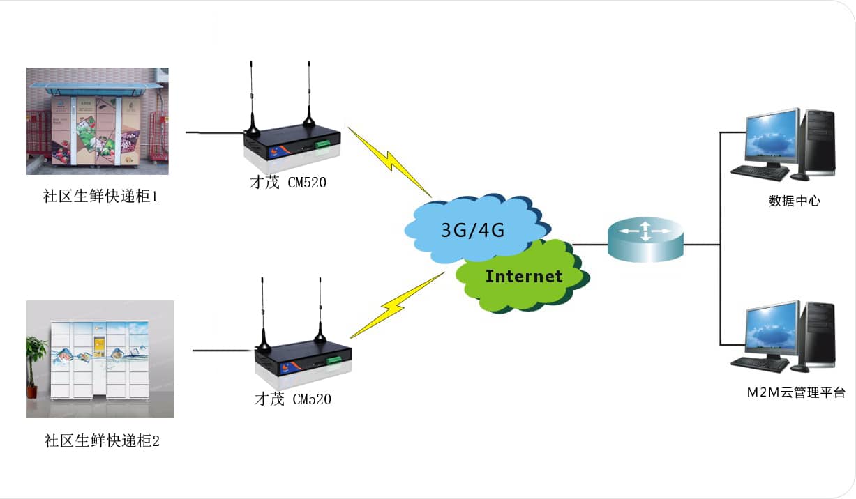 基于4G工業(yè)路由器生鮮快遞柜無(wú)線聯(lián)網(wǎng)系統(tǒng)解決方案