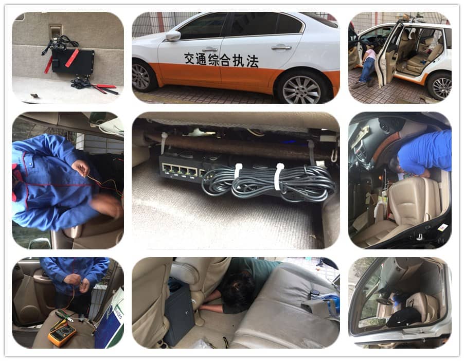 執(zhí)法車移動執(zhí)法是通過4G移動通訊網(wǎng)絡(luò)協(xié)調(diào)指揮管理和解決問題,是當(dāng)前移動應(yīng)急指揮領(lǐng)域最新一代指揮通訊網(wǎng)絡(luò)系統(tǒng)平臺,集成當(dāng)下最先進的指揮通訊技術(shù),是國內(nèi)首款4G全網(wǎng)通全終端雙向高清移動音視頻通訊指揮系統(tǒng)。廣州市交委的項目:56臺執(zhí)法車安裝才茂車載wifi設(shè)備(4G路由器),主要目的是需要實現(xiàn)移動執(zhí)法;主要運用的車型有越野車、商務(wù)車、小轎車等。該項目施工過程如下圖:先選擇好設(shè)備安裝位置,然后走線,需要走暗線,最后是取電環(huán)節(jié),再裝好設(shè)備等過程。