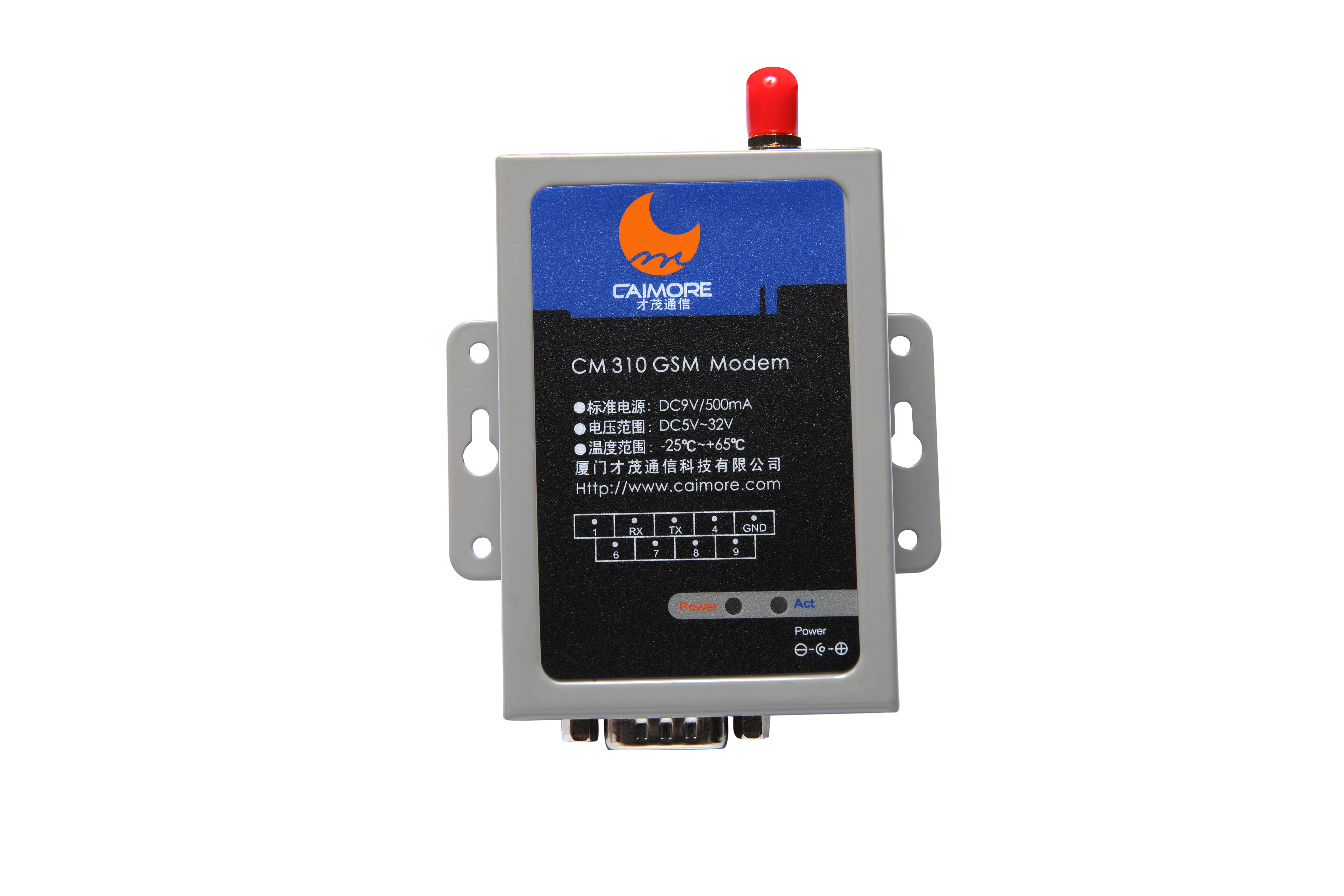 廈門才茂工業(yè)級GSM/GPRS MODEM CM310,是一款基于移動GSM/GPRS網(wǎng)絡(luò)平臺,內(nèi)嵌工業(yè)級GSM/GPRS無線模塊的短信和上網(wǎng)設(shè)備。標(biāo)準(zhǔn)工業(yè)級規(guī)范設(shè)計,支持PDU和TXT短信格式,具有中文短信收發(fā)、英文短信收發(fā)以及無線上網(wǎng)功能。提供串口RS232標(biāo)準(zhǔn)接口,直接與用戶電腦或者工控設(shè)備連接,實現(xiàn)短消息收發(fā)功能。