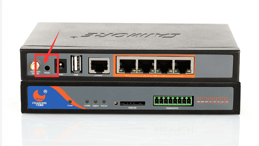 在工業(yè)4G路由器通電的情況下,按緊工業(yè)4G路由器背面的RESET按鈕(復(fù)位鍵)8秒,等到所有指示燈閃爍后松手即可恢復(fù)出廠設(shè)置。(注意:有些工業(yè)4G路由器的復(fù)位鍵是小孔,要用牙簽才能復(fù)位)